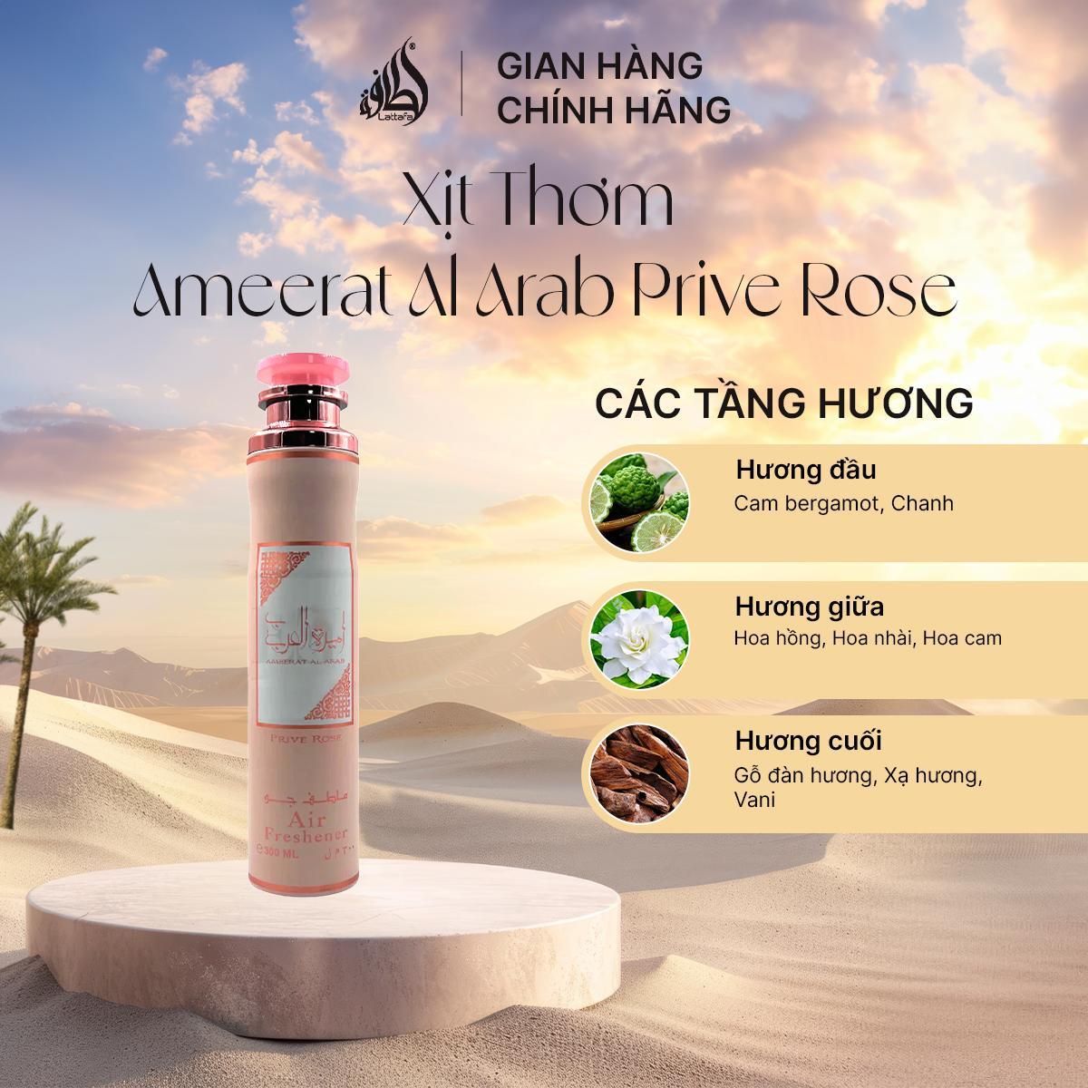 Lattafa xịt thơm phòng Ameerat Al Arab Prive Rose